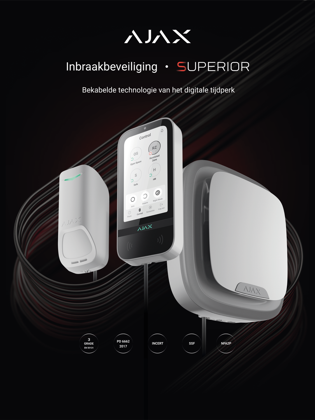 Ajax beveiligingsproducten heeft bedrade en draadloze produkten, alles beveiligingsproducten zijn te bedienen in AJAX-APP van AJAX!